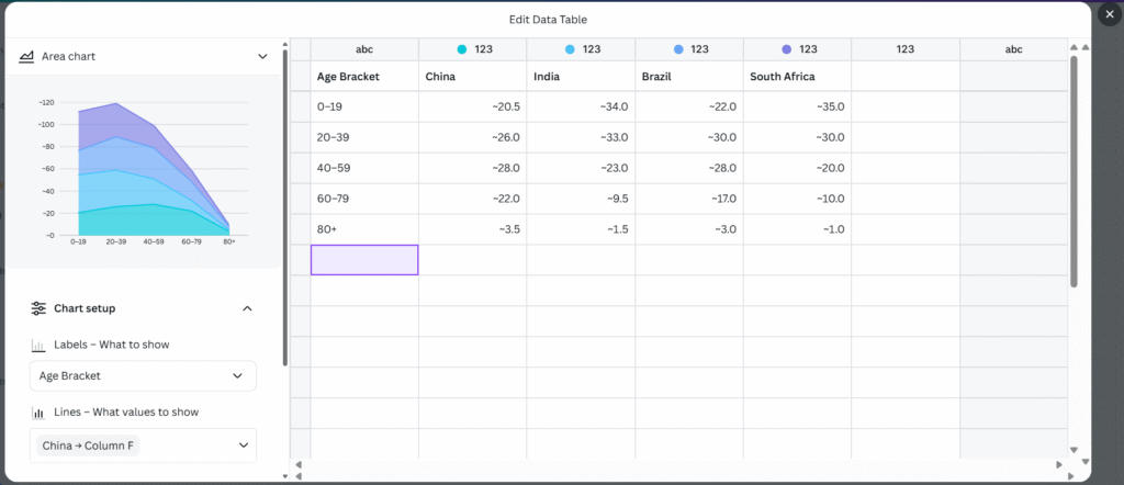 - Data Visualization: With intuitive chart and graph options, Canva simplifies turning raw data into visually compelling infographics, presentations, and reports (example below).