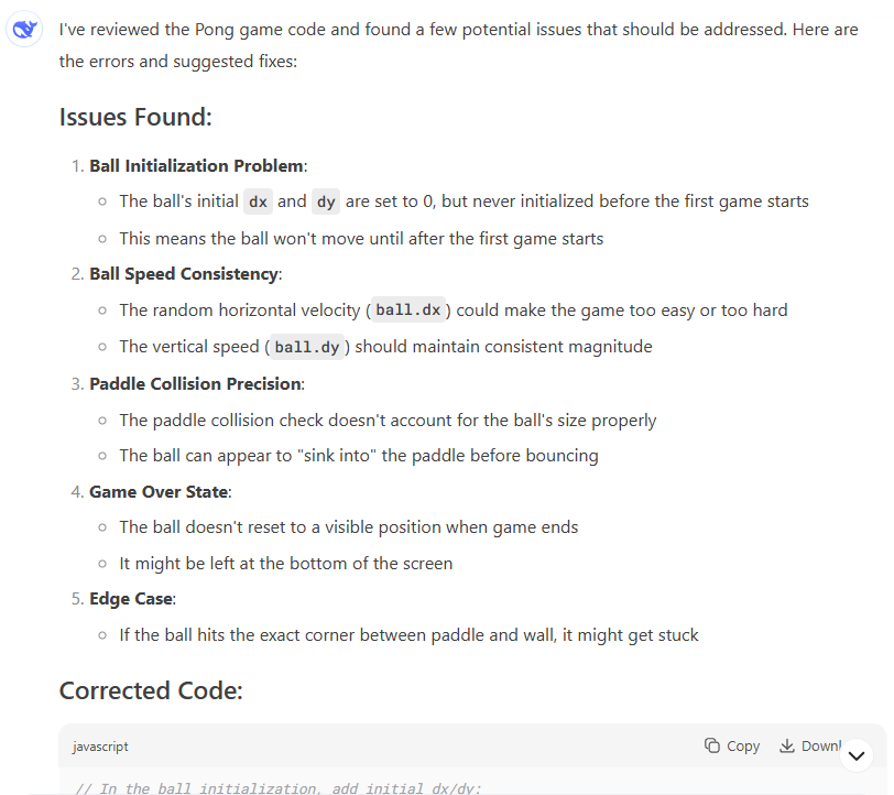 AI Assistant Programming Example – JavaScript Pong